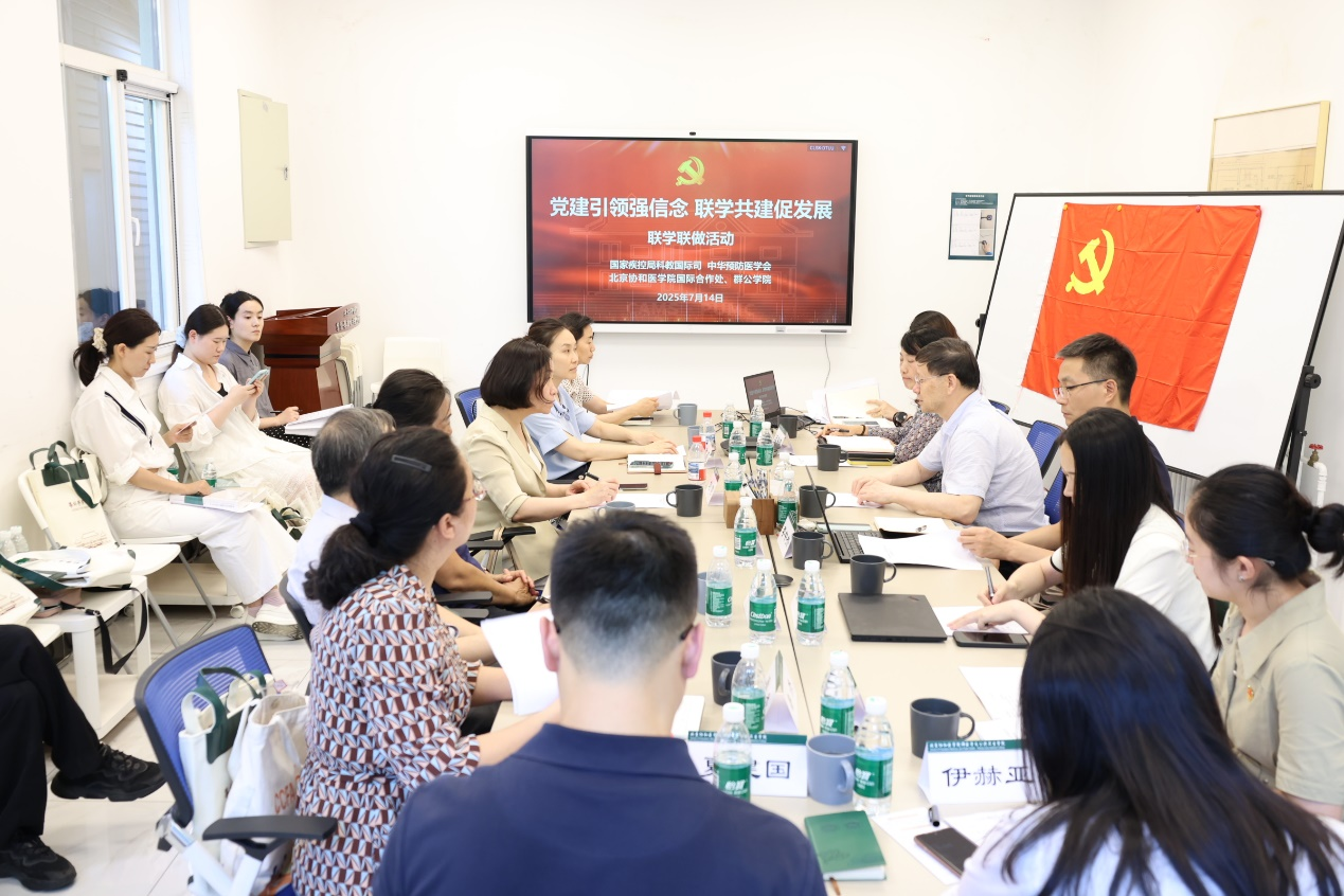 为深入贯彻落实习近平新时代中国特色社会主义思想,加强党组织建设,促进党建与业务融合发展,7月14日下午,中华预防医学会第二党支部联合国家疾控局科教国际司、北京协和医学院群公学院和国际合作处以“党建引领强信念 联学共建促发展”为主题在协和开展了一场联学联做主题党日活动。