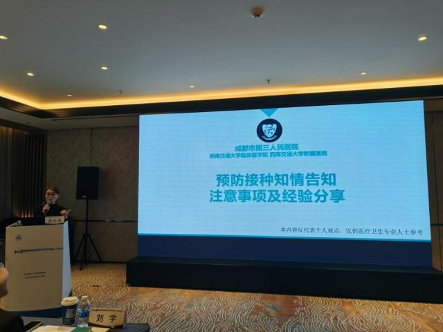 成都市第三人民医院杨涛毅主任医师、李红霞副主任护师立足临床实践,分别就常见预防接种不良事件的临床处置与急救、知情告知注意事项分享了鲜活的实践经验和体会。培训专门设置模拟案例演练环节,由成都市三医院专家现场指导,参会人员沉浸式体验了规范化接种操作,将理论知识转化为实操能力。