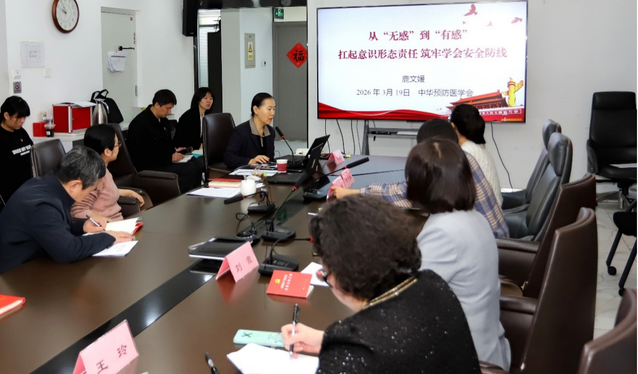 2026年3月19日上午,中华预防医学会秘书处党委举办2026年第一季度主题党日活动。学会秘书处党委书记刘霞同志主持,学会全体党员干部职工参加。