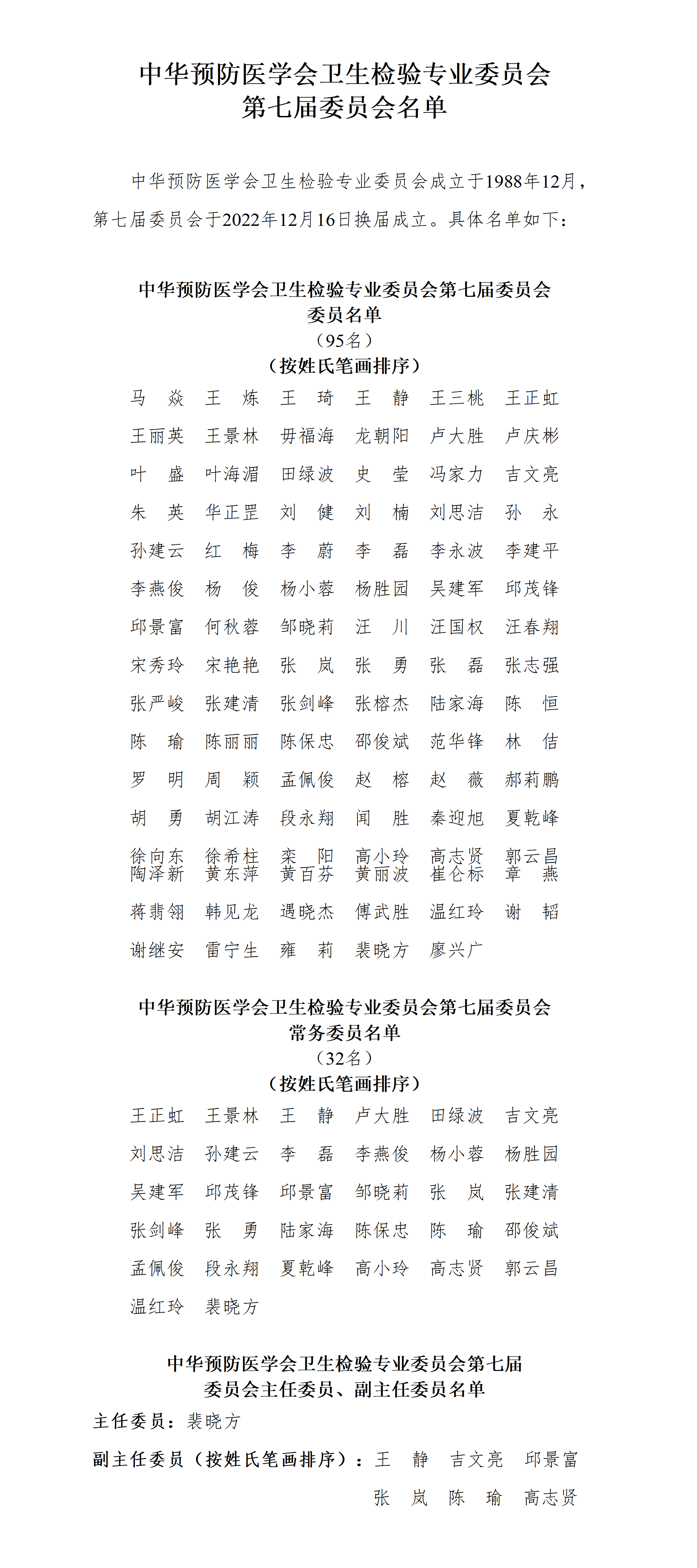 图4 2017年12月,裴晓方教授当选第六届卫生检验专业委员会主任委员