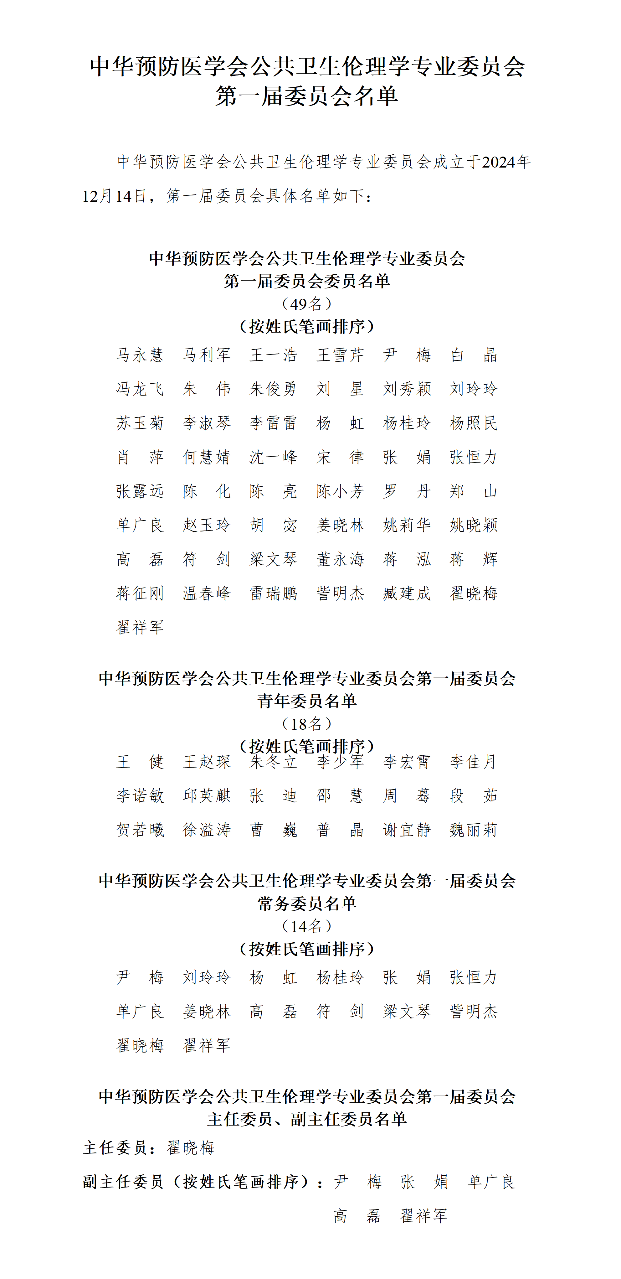 2024年12月14日,公共卫生伦理学专业委员会第一届委员会委员合影